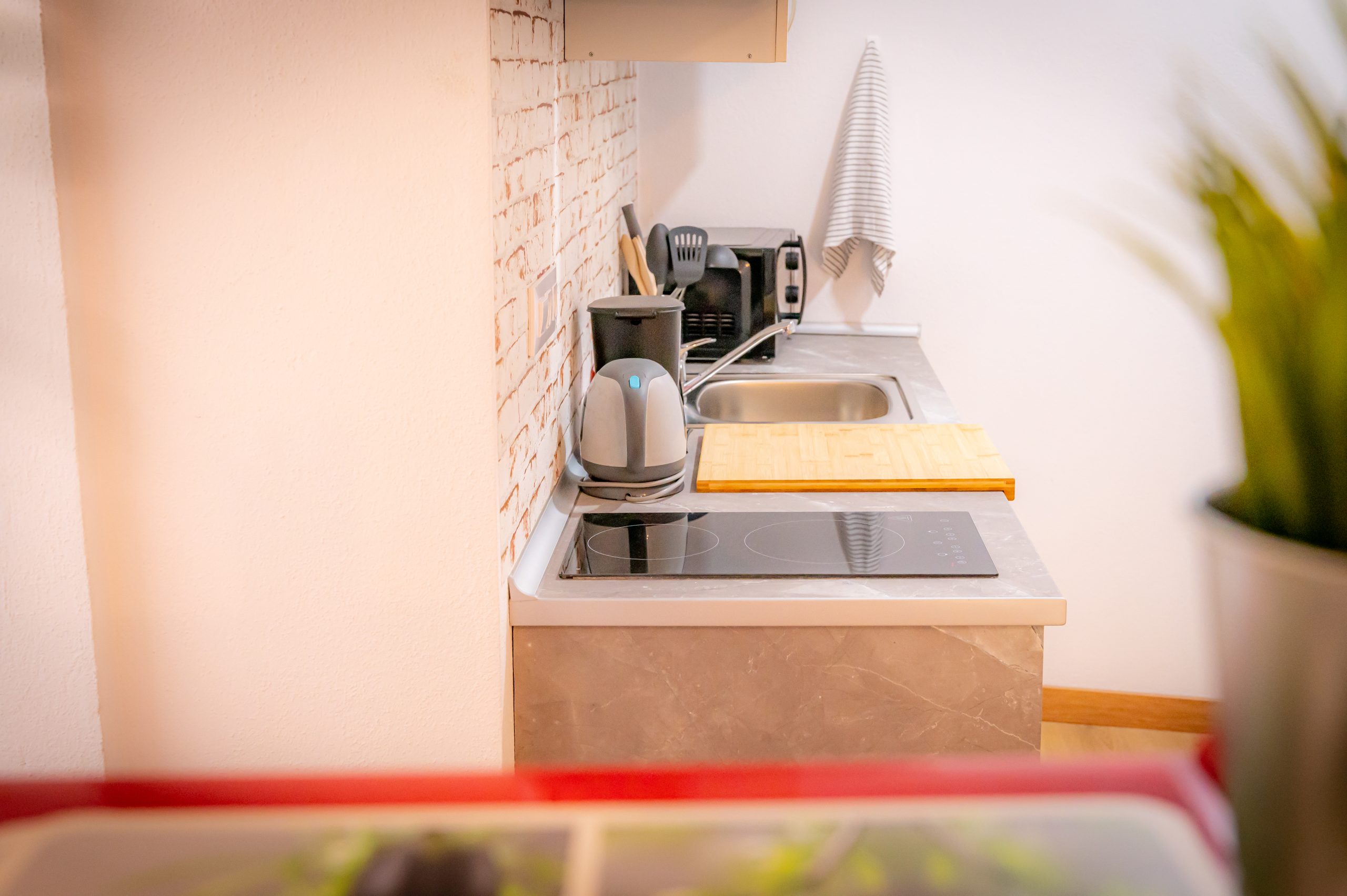 El apartamento cuenta con 1 dormitorio con cama grande + posibilidad de cama supletoria, 1 baño con ducha, ropa de cama, toallas, TV de pantalla plana, zona de comedor, cocina totalmente equipada, lavadora, productos de aseo, secador de pelo…